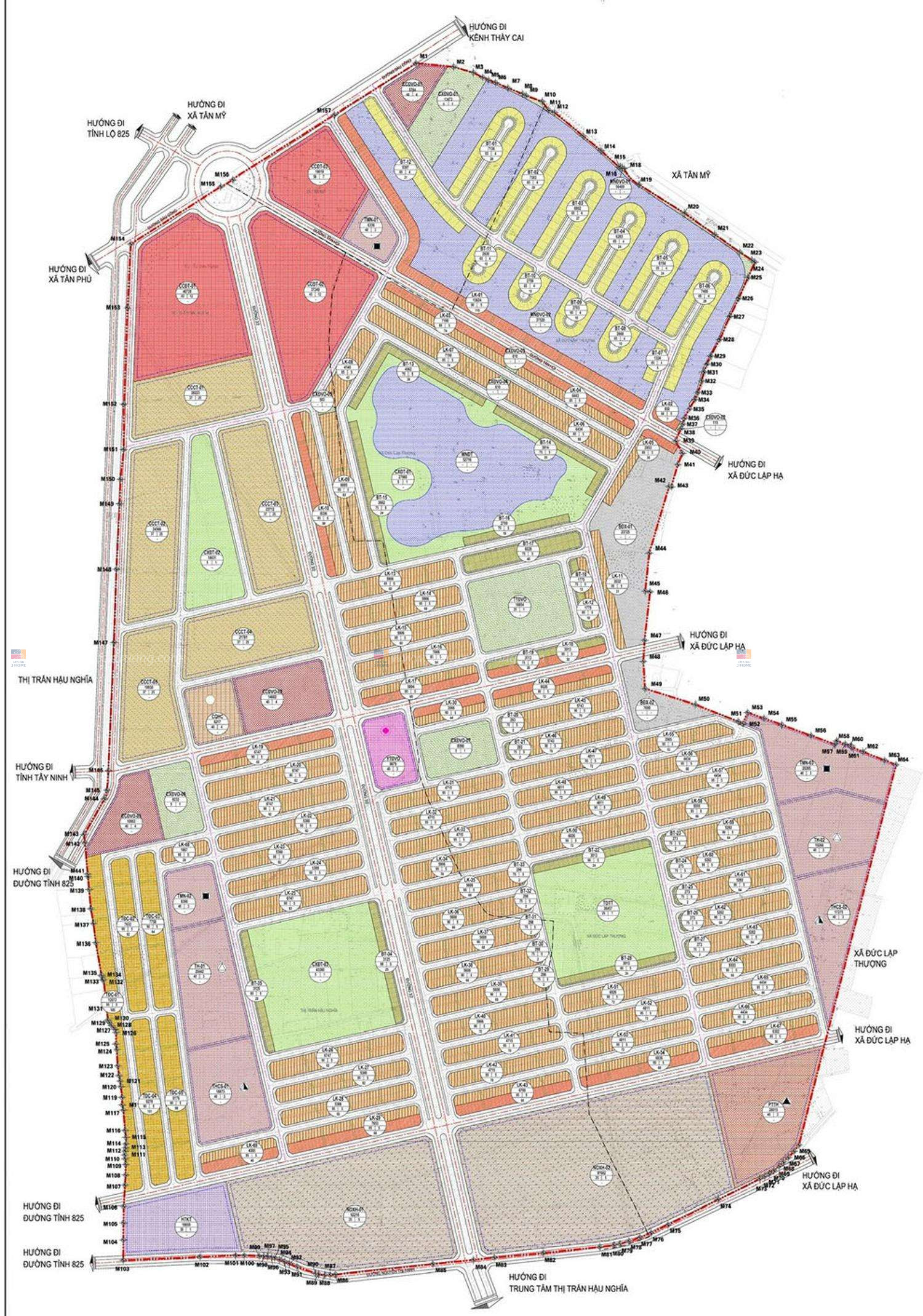 - Phía Tây: Gắn kết với khu dân cư thị trấn Hậu Nghĩa và trục Quốc lộ N2.